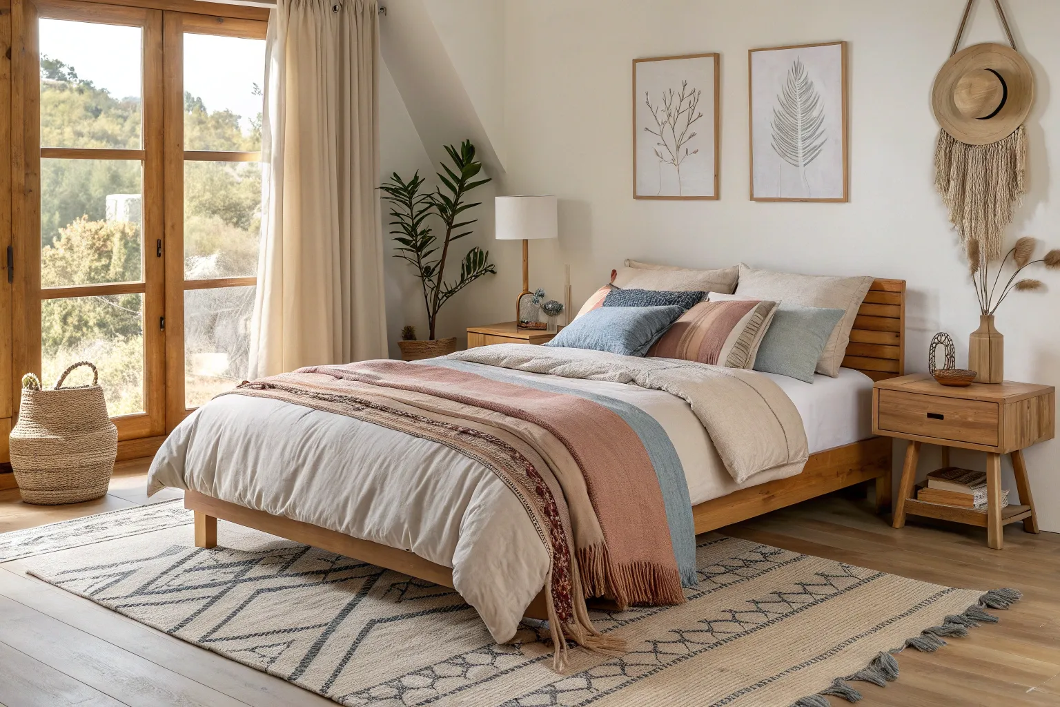 Infuse bohemian charm for a laid-back yet artistic bedroom.