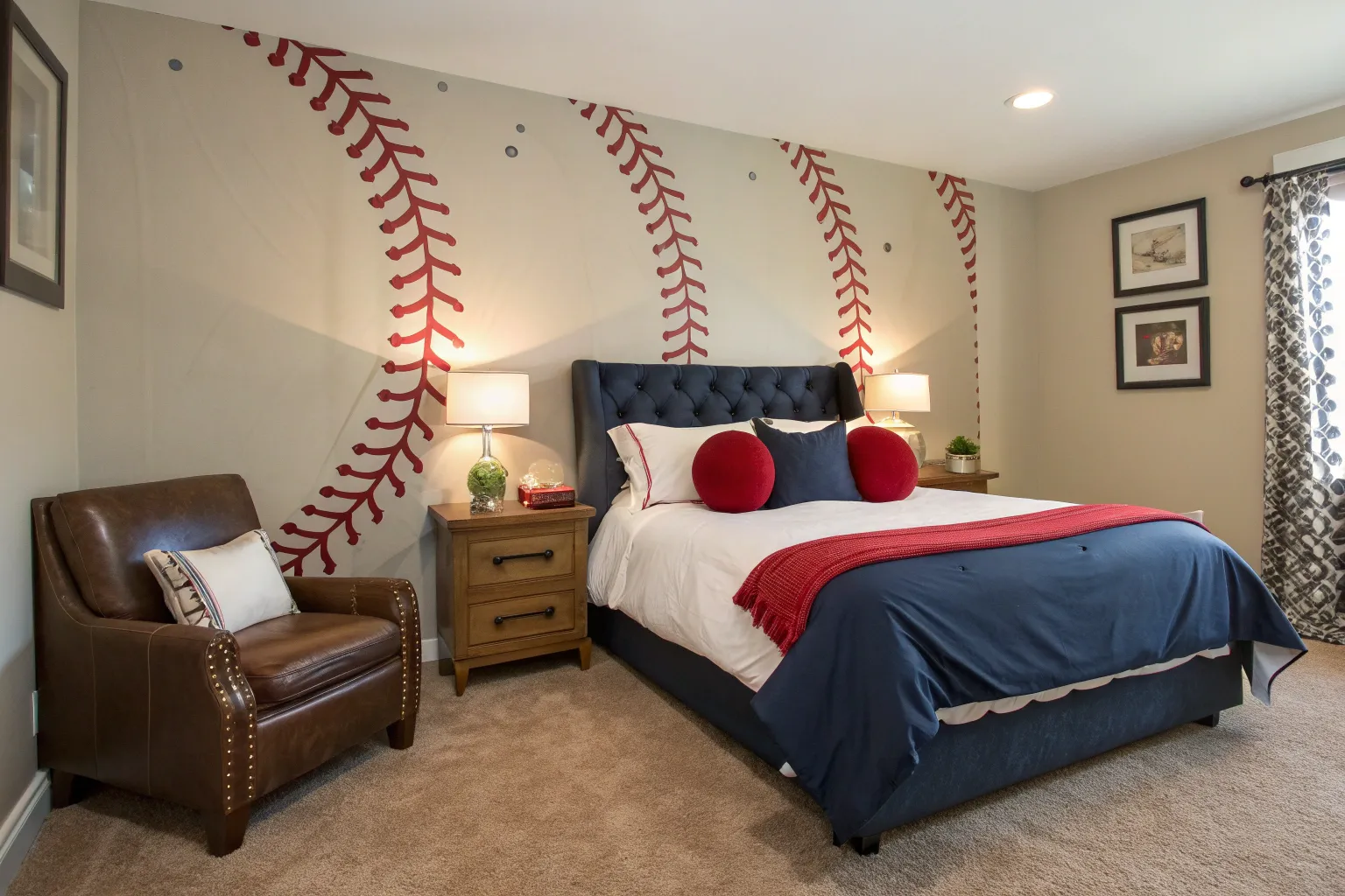 A rug featuring baseball stitch patterns can be a subtle yet effective design choice. It ties the room together, providing both comfort and a thematic element.