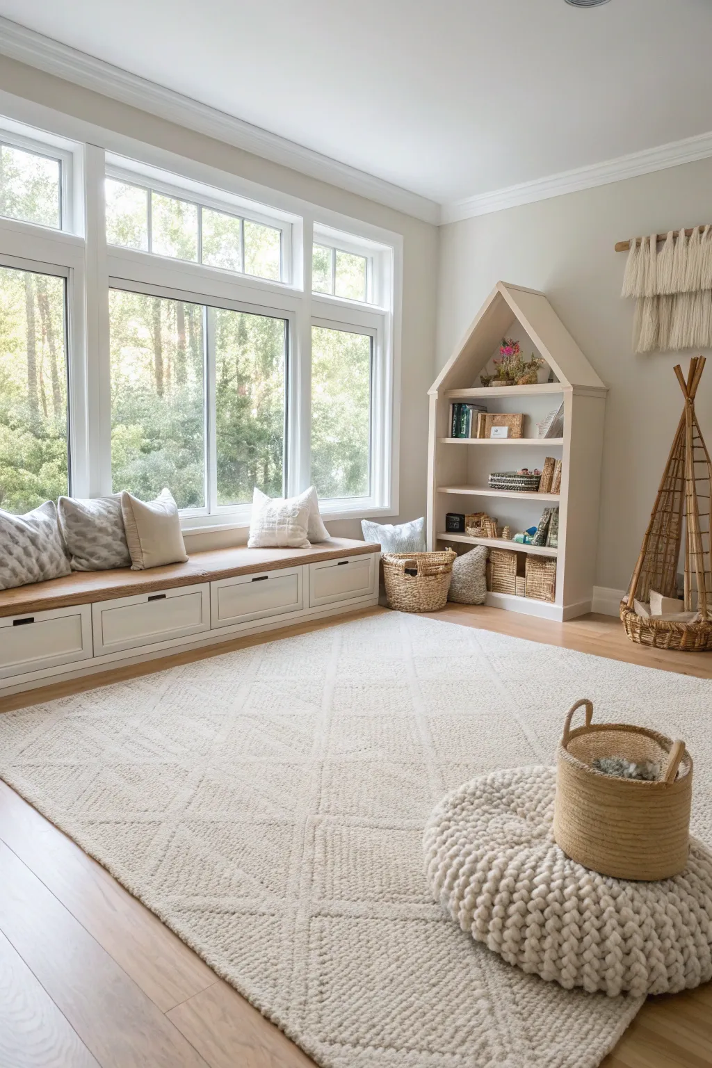 • Colorful Geometric Area Rug: Add vibrant colors to your playroom with a stylish geometric rug. Perfect for diverse play activities.