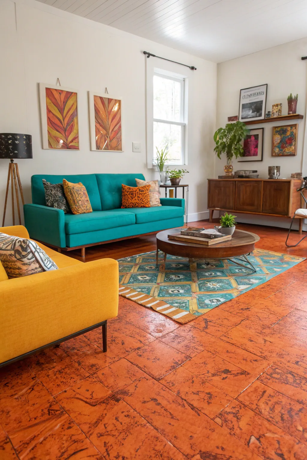 - Cozy Area Rug: Add warmth to your room with a soft area rug complementing your burnt wood flooring.
