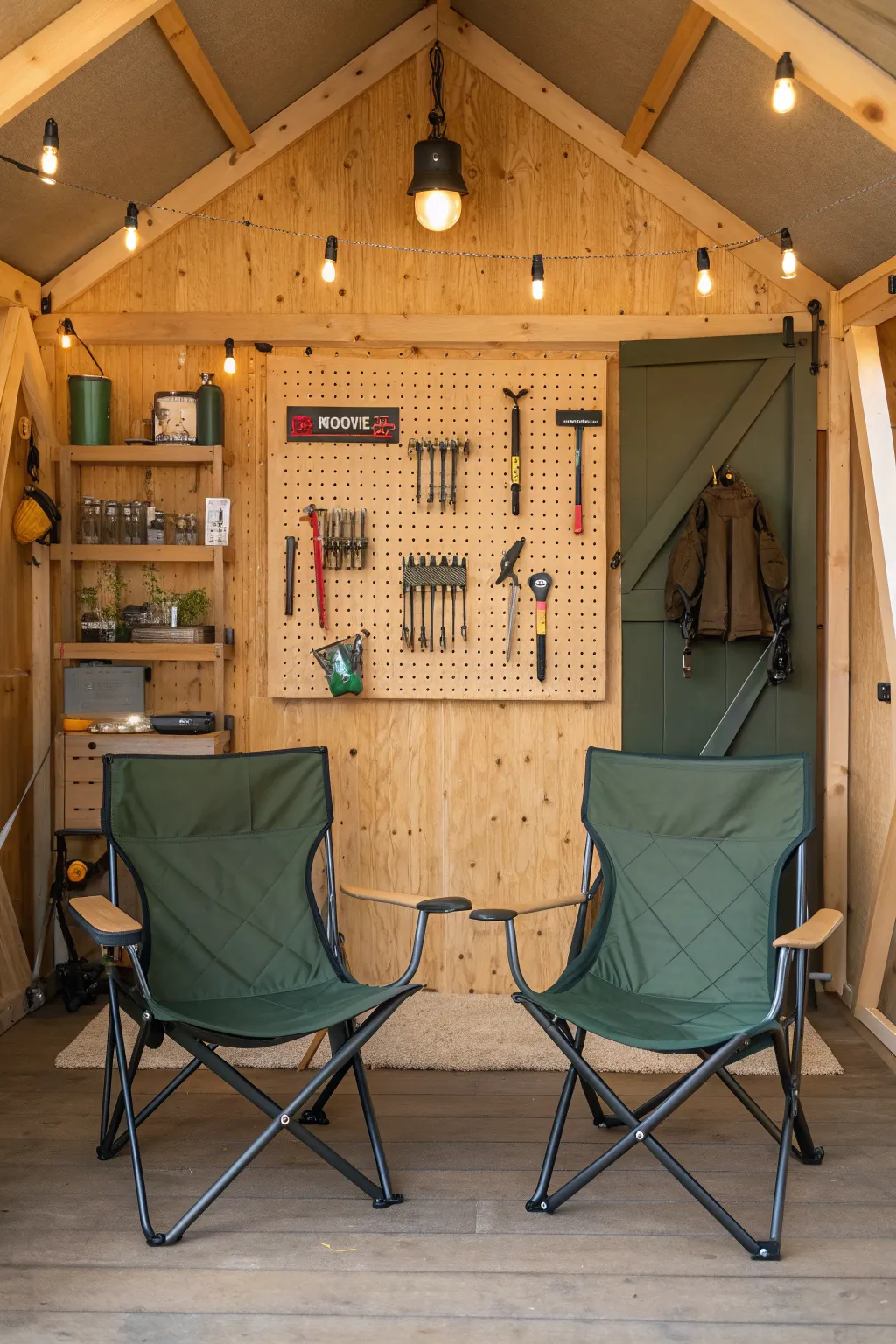 • Adjustable Pegboard Shelving: Enhance your pegboard with adjustable shelving to suit any camping chair storage needs.