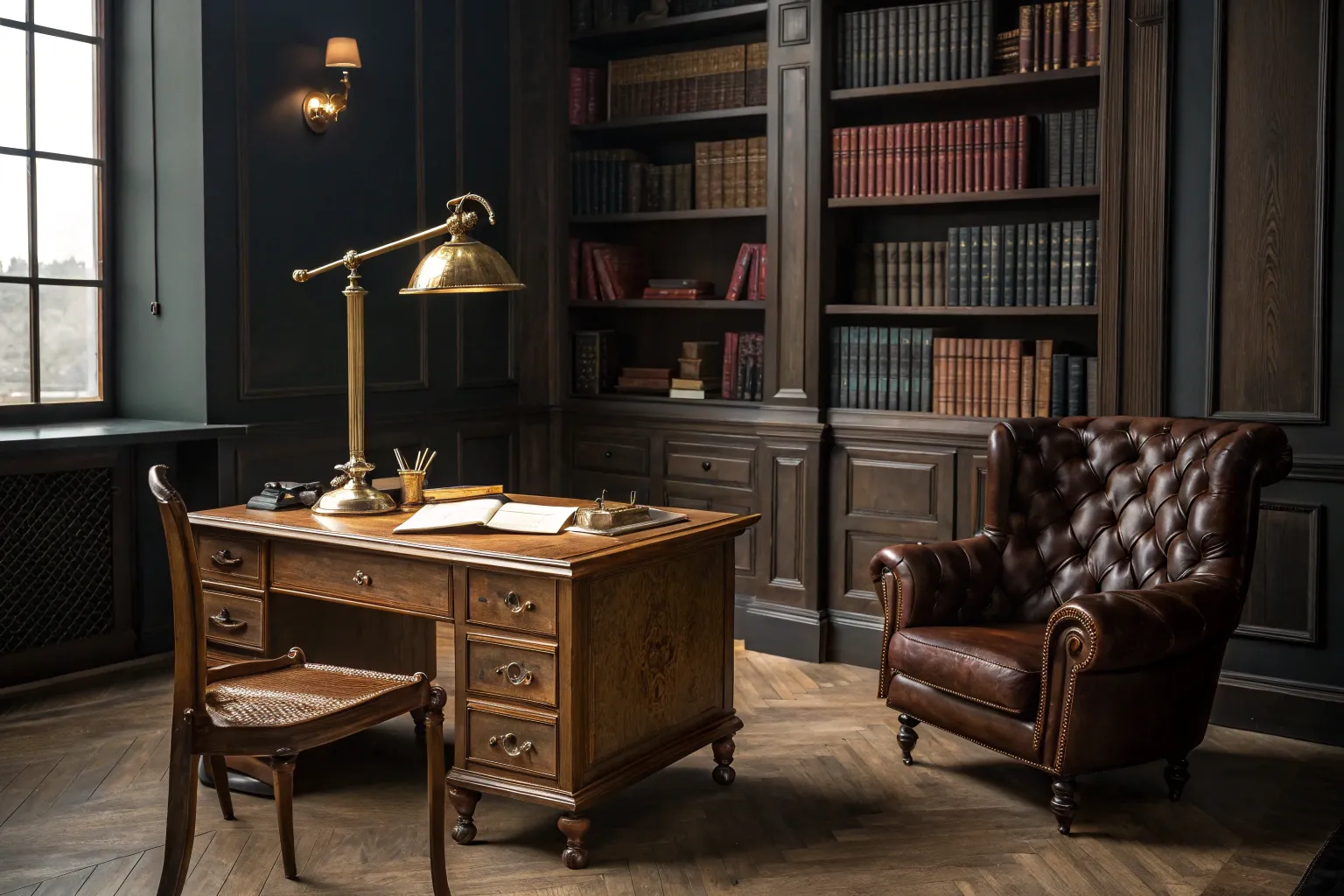- Classic Antique Bookshelf: Complement your desk with a classic antique bookshelf for a cohesive dark academia look.