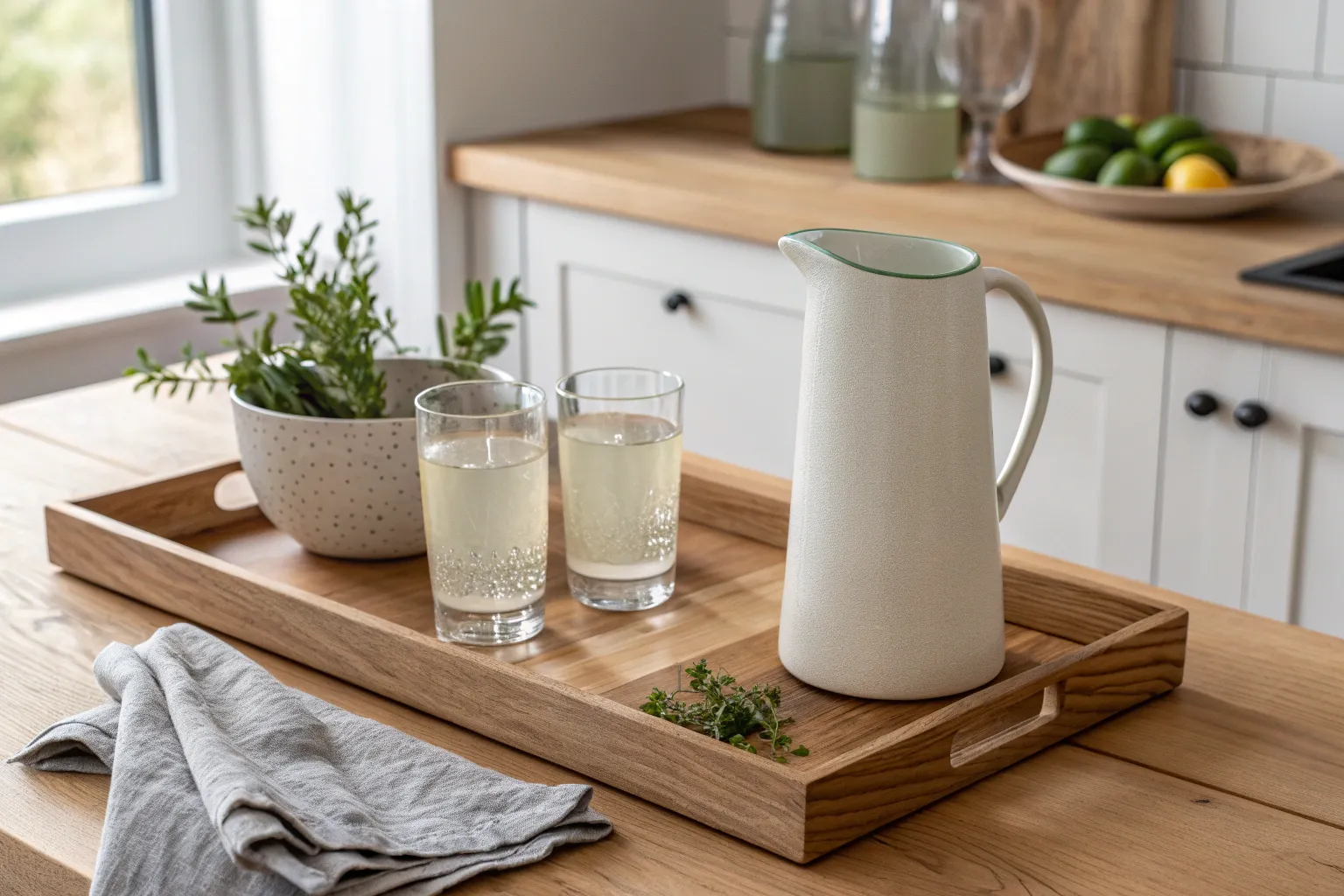 • Wooden Serving Tray: Enhance your drink station with a sleek wooden tray, ideal for a minimal look.