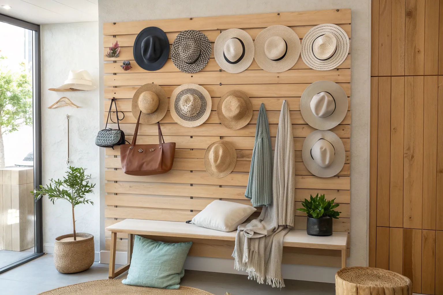 Why not make your hats part of the decor? I love arranging mine in a creative pattern on the wall, turning storage into an art piece that catches everyone’s eye.