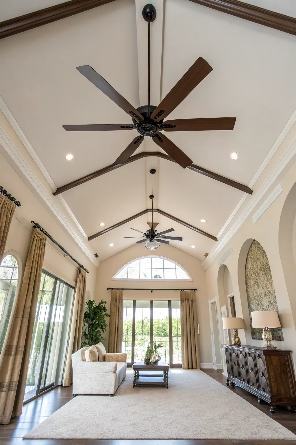 For a striking look, consider dual ceiling fans in large rooms. I’ve seen this approach work wonders in expansive areas, adding both functionality and flair.