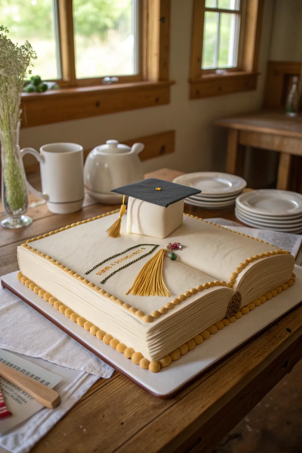 Create an illusion cake that looks like a real graduation book. It’s a surprising visual treat that wows guests.