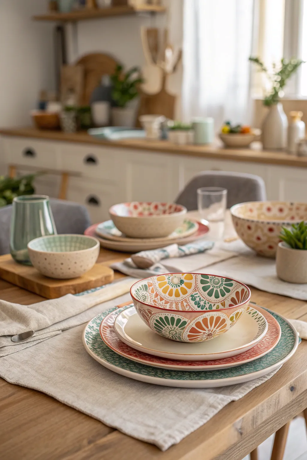 • Colorful Ceramic Dinnerware Set: Brighten your kitchen with this vibrant dinnerware, adding artistic flair to your dining table.