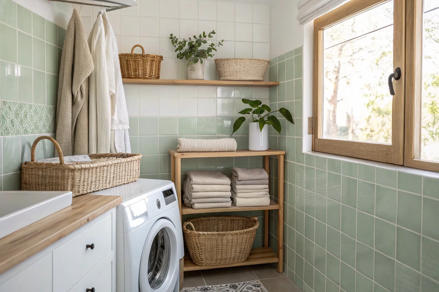 Soft pastel tiles can create a serene and calming atmosphere. They’re perfect for making your laundry routine feel a little more peaceful.