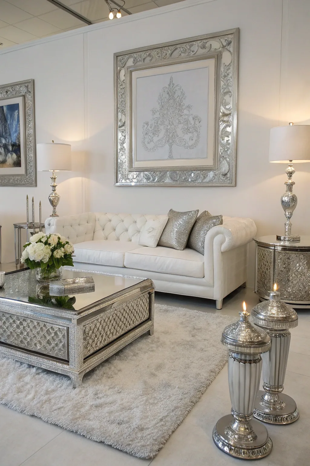 - Marble Sculpture: Introduce sophistication with a marble sculpture, seamlessly blending with silver tones.