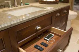 • Natural Wood Bathroom Vanity: Add elegance with a natural wood vanity, combining durability and timeless charm effortlessly.