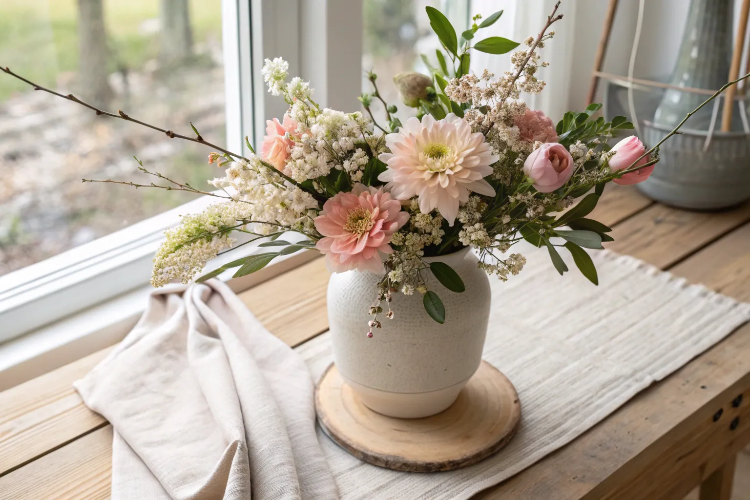 - Natural Burlap Table Runner: Enhance your table setting with a natural burlap runner, adding warmth to your floral arrangement.