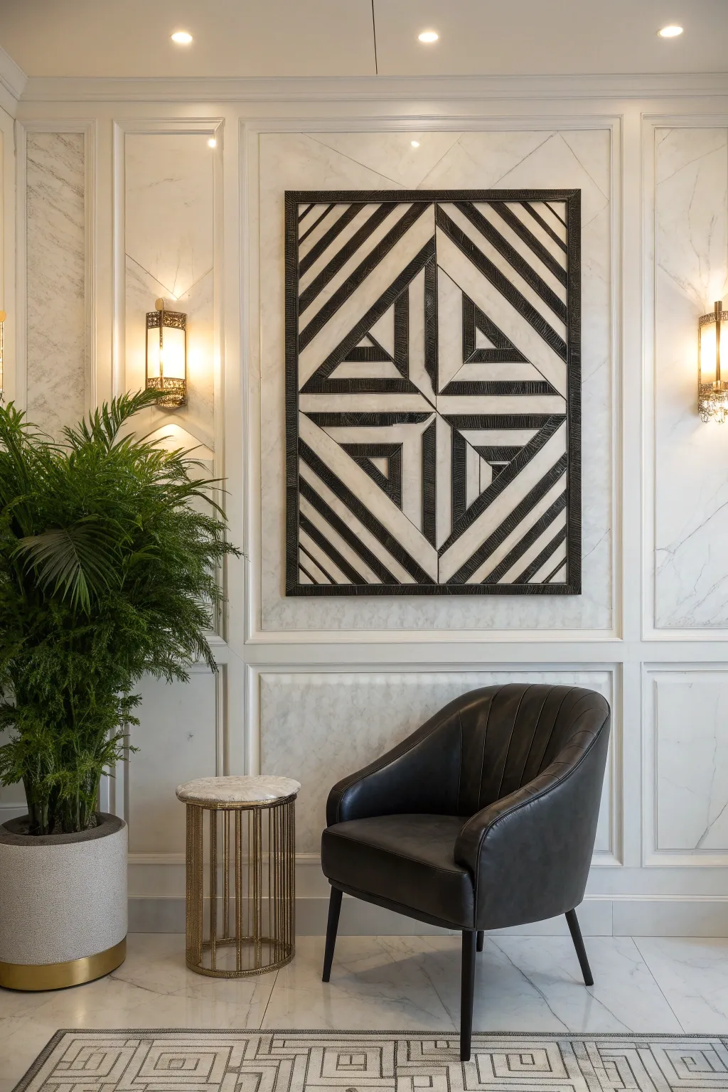 - Black and White Geometric Wall Art: Elevate your space with bold wall art that adds modern elegance and striking contrast.