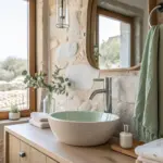 • Tropical Leaf Wallpaper: Transform your space with vibrant tropical leaf wallpaper. Perfect for a refreshing bathroom vibe.